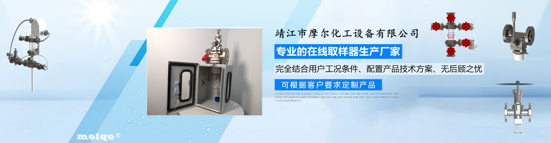 靖江市摩爾化工設(shè)備有限公司位于蘇中明珠——江蘇省靖江市城南工業(yè)園區(qū)東進路北側(cè)天元艾爾瑞內(nèi),另有生產(chǎn)基地位于靖江市經(jīng)濟技術(shù)開發(fā)區(qū)新號路1號鼎電科技園內(nèi)。我公司由數(shù)名長期從事化工生產(chǎn)、氟塑襯里模具開發(fā)以及機械自控設(shè)備的專業(yè)人員共同合作成立,致力于提供客戶最優(yōu)的高效在線取樣、反應(yīng)及精餾分離設(shè)備,為客戶提供合理的設(shè)備選型方案,以幫助客戶提高綜合生產(chǎn)效率以及改善生產(chǎn)現(xiàn)場環(huán)境為目標(biāo)。 本公司主要制造及銷售的產(chǎn)品有:釜用在線取樣裝置,管道取樣閥,釜用清洗噴淋裝置、搪玻璃設(shè)備、GMP專用搪玻璃設(shè)備、氟塑襯里設(shè)備、攪拌器、釜用機械密封、氣動閥門及搪玻璃管道、襯氟閥門管道、非標(biāo)不銹鋼容器,精餾塔塔器、片式冷凝器及PTFE密封件、鋯、鈦、鉭、鎳等加工件制品。我司是一家集研發(fā)銷售、設(shè)計咨詢服務(wù)于一體的專業(yè)···| 杭锦旗 | 禹城市 | 横山县 | 松阳县 | 京山县 | 汝州市 |